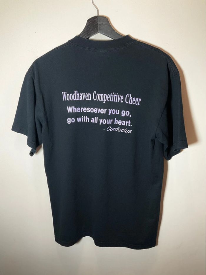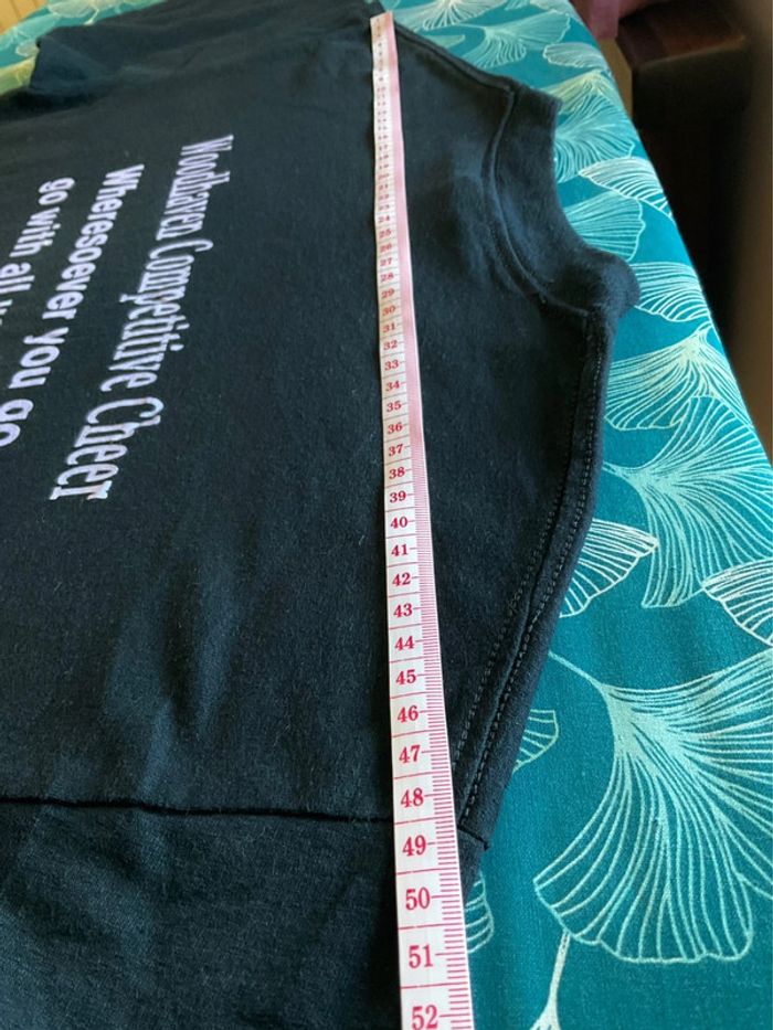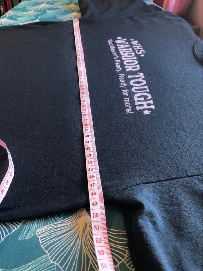 Taille M Bon état (tâches de peinture sur le devant et la manche droite) voir photos T-shirt noir pour femme Woodhaven Competitive Cheer Composition : 50% coton, 50% polyester Aisselle à aisselle : 48,5cm Épaule à épaule : 48cm Longueur : 68cm Les dimensions sont également présentes en photo Envoi rapide et soigné Vêtement lavé et repassé #tshirt #gildan #cheer #cheerleading #usa #cheerleader #vintage #m #us #fan #apparel #imprimé #oversize #oversized