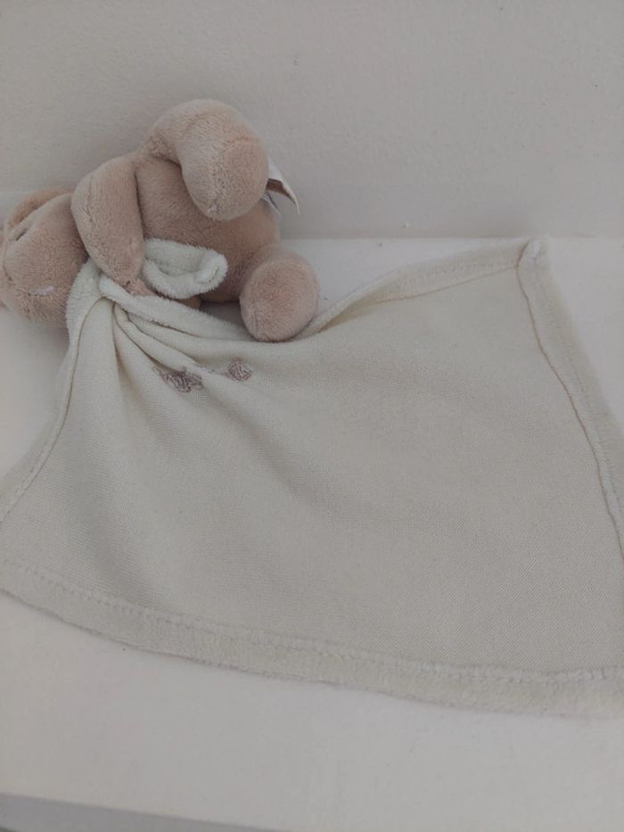 Doudou lapin Baby Nat marron clair avec mouchoir brodé beige La fonctionalité des lots étant disponible, n'hésitez pas à consulter le #lameredechine pour pouvoir facilement vous promener dans ma boutique.