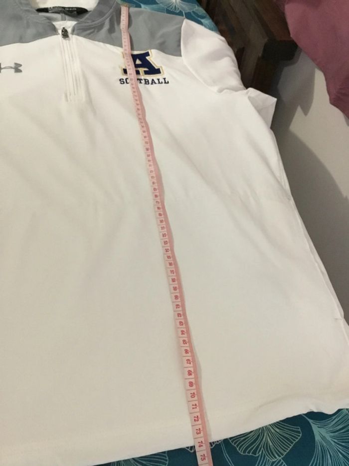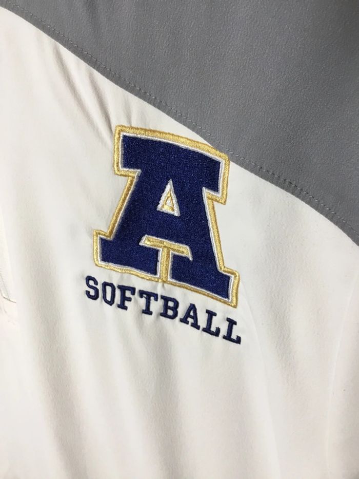 Taille S Excellent état Haut blanc et gris 1/4 zip manches courtes de l’équipe de softball de l’ Apalachee High school Léger à porter idéal pour le sport mais également en lifestyle Coupe ample Logos brodés poitrine Deux poches ouvertes pour les mains Ouverture à fermeture éclair 1/4 zip sur le côté droit en bas Toutes les fermetures éclair fonctionnent parfaitement Système de serrage au niveau de la poche gauche complet et fonctionnel Composition : polyester, élasthanne Aisselle à aisselle : 57cm Longueur : 73cm Dimensions également présentes en photo Vêtement lavé Envoi rapide et soigné #vintage #annees90 #annees2000 #annees2010 #annees2020 #sport #sportswear #classicstyle #classic #classique #homme #men #man #hombre #uomo #mann #hommes #tshirt #polo #underarmour #usa #américain #americancollege #streetwear #université #university #sportamericain #softball #baseball