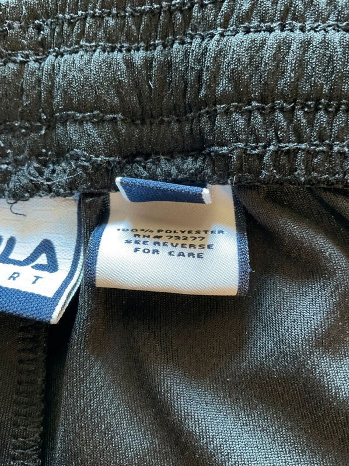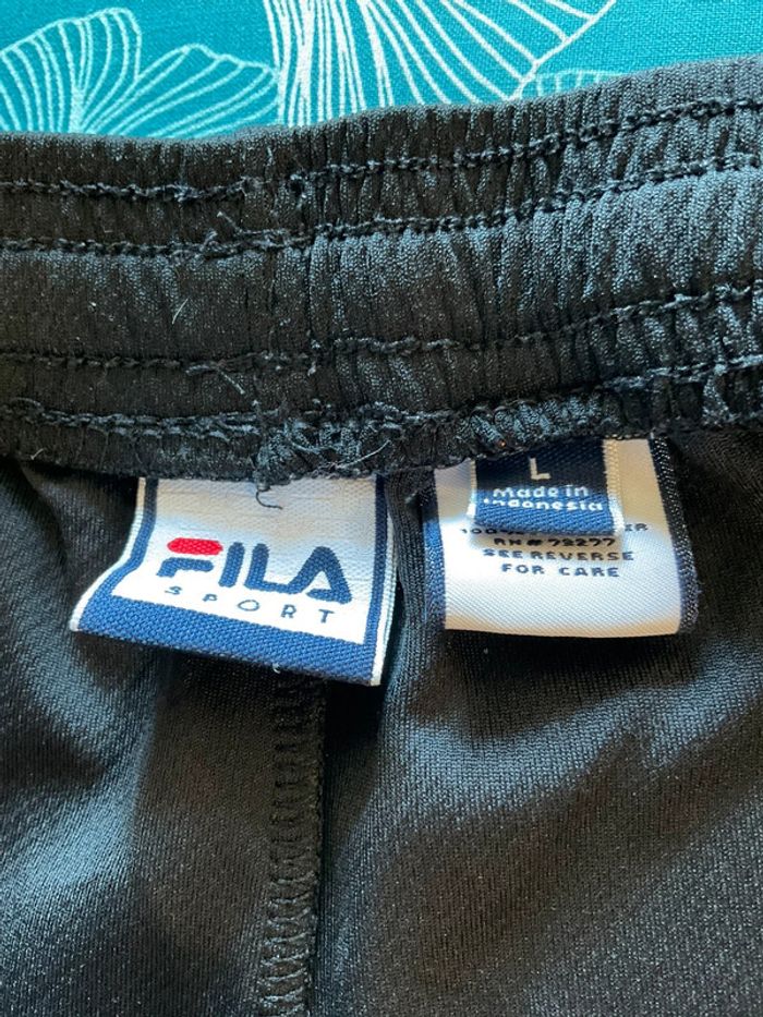 Taille L Très bon état Short léger noir pour homme Fila idéal pour la pratique sportive Deux poches pour les mains Logo brodé Composition : polyester Ceinture : 41cm Cuisse : 34cm Longueur : 48cm Dimensions également présentes en photo Vêtement lavé Envoi rapide et soigné #short #sport #vintage #tendance #style #saison #mode #fitness #training #running #sportswear #polyester #printemps #été #homme #men #man #hombre #uomo #fila #shorts #l #vertfluo