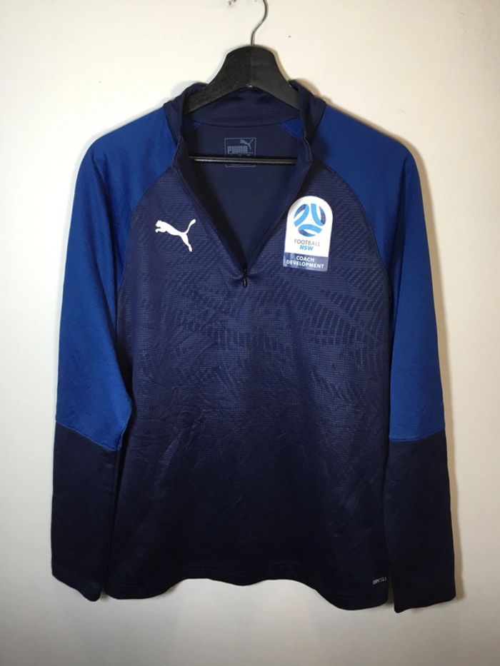 Taille S Très bon état Sweat 1/4zip training pour homme Puma bleu marine appartenant à l’association australienne NSW FOOTBALL Gamme Dry Cell Sweat fin idéal pour la pratique sportive Logos floqués Composition : polyester Aisselle à aisselle : 52,5cm Manches : 76cm de la base du col au bout de manche Longueur : 69cm Dimensions également présentes en photo Vêtement lavé et repassé Envoi rapide et soigné #sport #sportswear #classicstyle #classic #classique #homme #men #man #hombre #uomo #mann #hommes #pull #puma #survetement #training #universite #university #australia #academy #college #trackjacket #football #soccer #association #nsw #coach