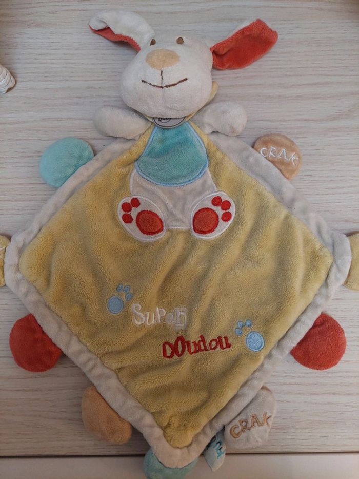 BABYNAT BABY NAT DOUDOU SUPER CHIEN BLANC MOUCHOIR PLAT JAUNE La fonctionalité des lots étant disponible, n'hésitez pas à consulter le #lameredechine pour pouvoir facilement vous promener dans ma boutique.