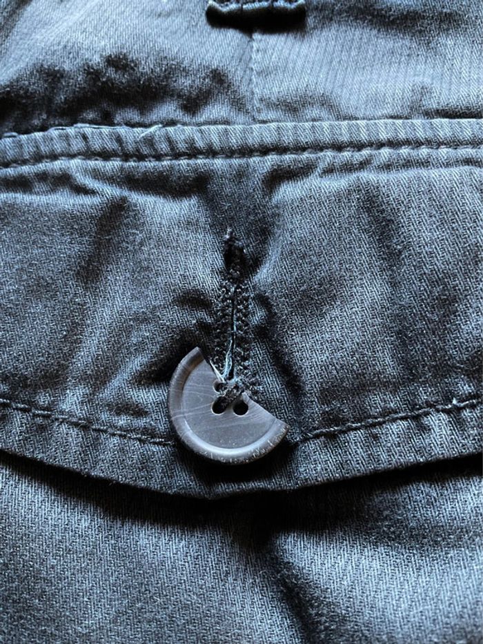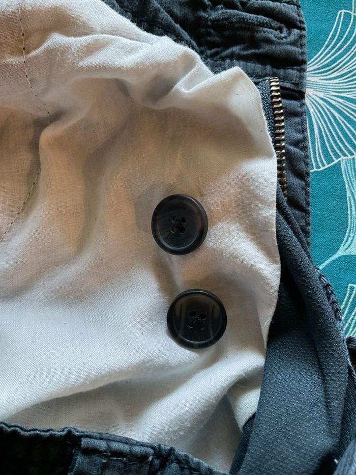 Deux boutons neufs cousus à l’intérieur d’une poche