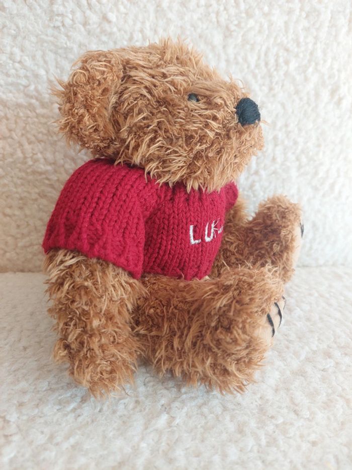 Lulu castagnette - ours en peluche avec pull rouge - photo numéro 1