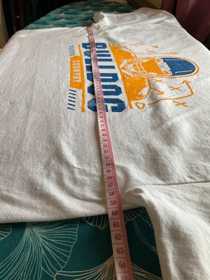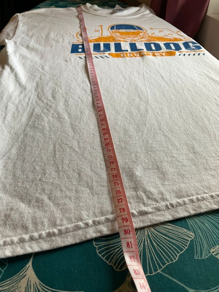 Taille XL Très bon état T-shirt blanc pour homme Gildan Bulldog Country 2015 Composition : 100% coton Aisselle à aisselle : 59cm Épaule à épaule : 59cm Longueur : 79cm Les dimensions sont également présentes en photo Envoi rapide et soigné Vêtement lavé et repassé #tshirt #gildan #usa #vintage #xl #us #fan #apparel #imprimé #floqué #serigraphié #serigraphie #coton #vintagedressing #white #bulldog #country
