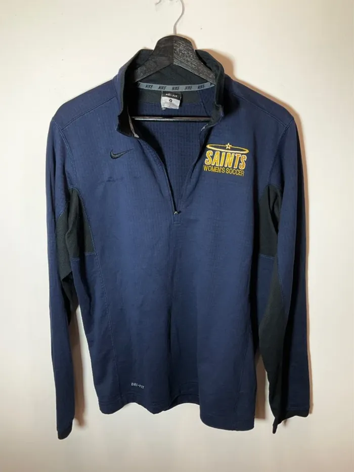 Taille S Bon état (retouche sous le logo Nike, légère tâche en bas du Sweat) voir photos Sweat long 1/4zip bleu marine pour homme Nike Saints Women Soccer Sweat léger mais chaud et plutôt prêt du corps Dri fit La fermeture éclair fonctionne parfaitement Logos brodés Composition : polyester Aisselle à aisselle : 53cm Épaule à épaule : 42cm Manches : 64cm Longueur : 70cm Dimensions également présentes en photo Vêtement lavé et repassé Envoi rapide et soigné #fitness #vintage #tendance #style #saison #mode #sport #sportswear #classicstyle #classic #classique #homme #men #man #hombre #uomo #mann #hommes #pull #nike #streetwear #football #oldschool #lifestyle #training #usa #highschool #universite #college #academy #university #running