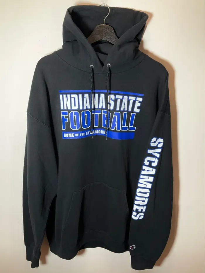 Sweat à capuche noir pour homme Champion Indiana State Football Sycamores taille 3XL 473