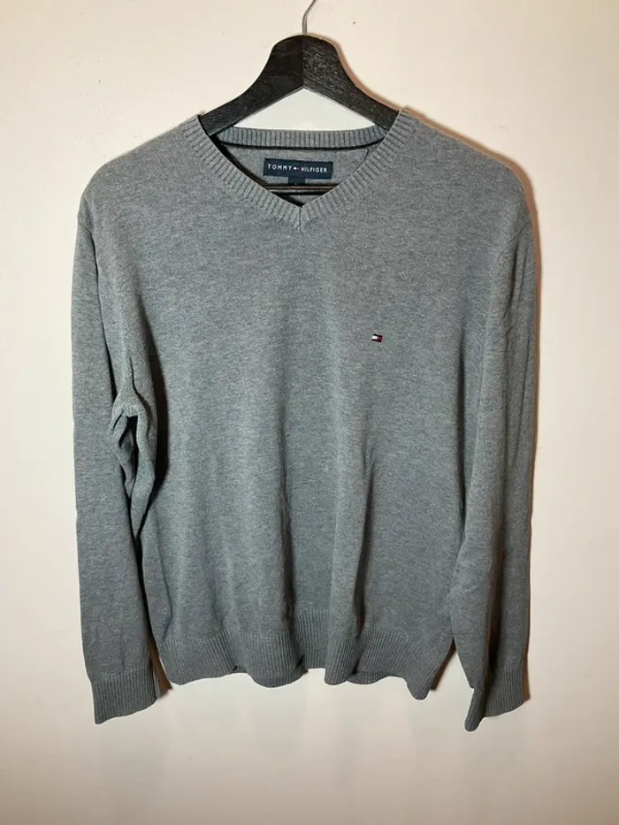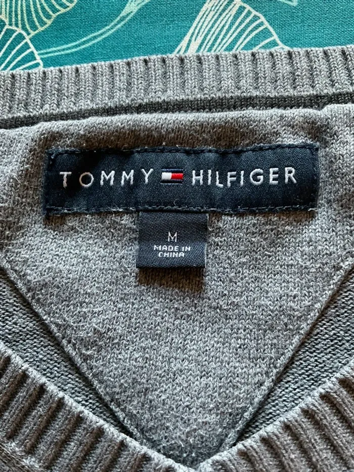 Pull col en V gris pour homme Tommy Hilfiger taille M 472 - photo numéro 1