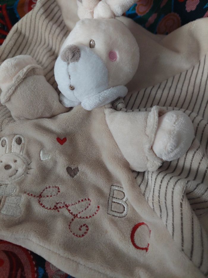 Nicotoy - doudou carré lapin beige brodé ABC - photo numéro 2
