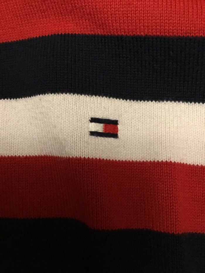 Pull col rond Tommy Hilfiger marine et rouge taille L 059 - photo numéro 4