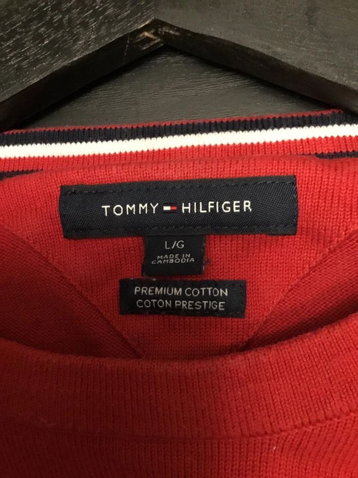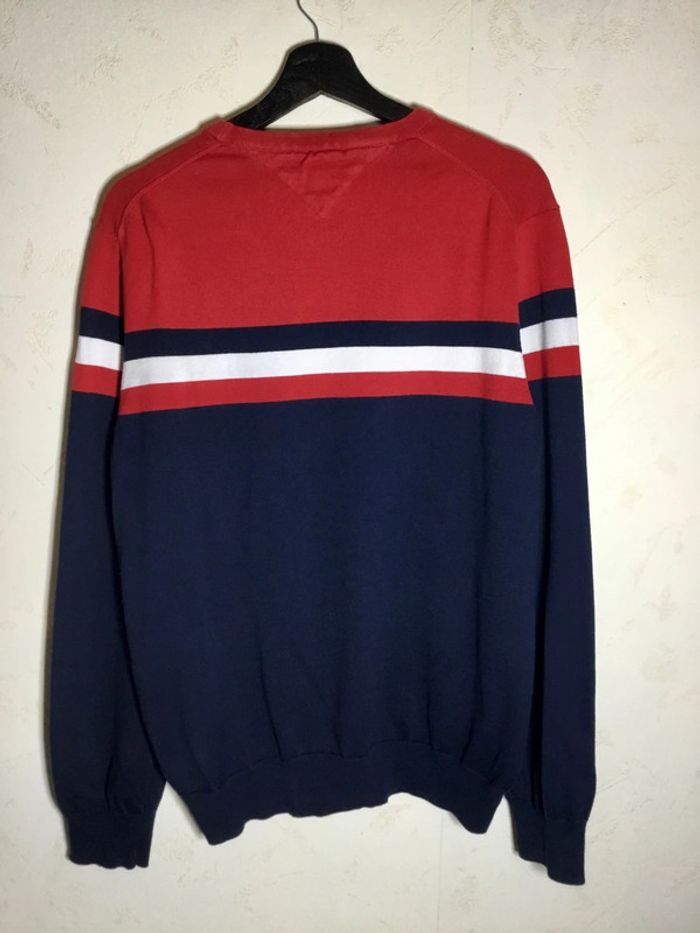 Pull col rond Tommy Hilfiger marine et rouge taille L 059 - photo numéro 3