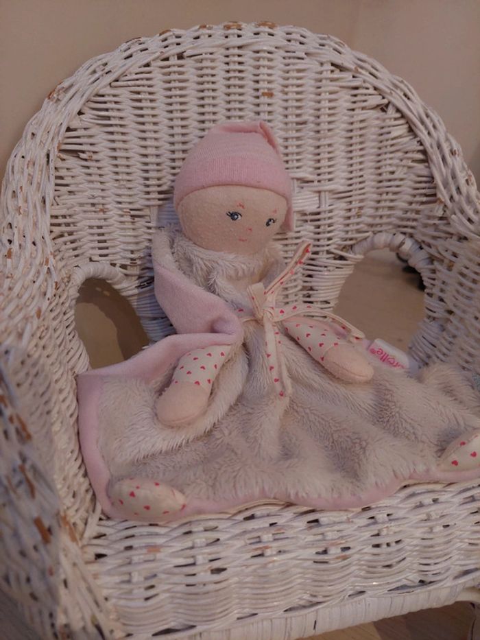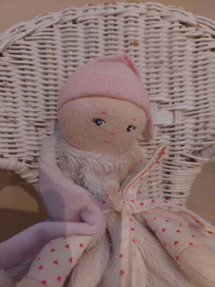 Corolle - doudou plat poupee rose et blanche - photo numéro 1