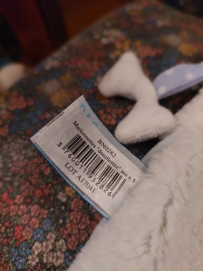 Baby'Nat Les Douillettes marionnette chien blanc bleu jaune os Référence BN0282 La fonctionalité des lots étant disponible, n'hésitez pas à consulter le #lameredechine pour pouvoir facilement vous promener dans ma boutique.