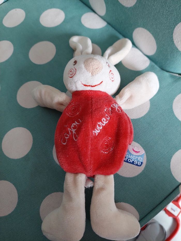 Lapin rouge avec doudou mouchoir blanc La fonctionalité des lots étant disponible, n'hésitez pas à consulter le #lameredechine pour pouvoir facilement vous promener dans ma boutique.