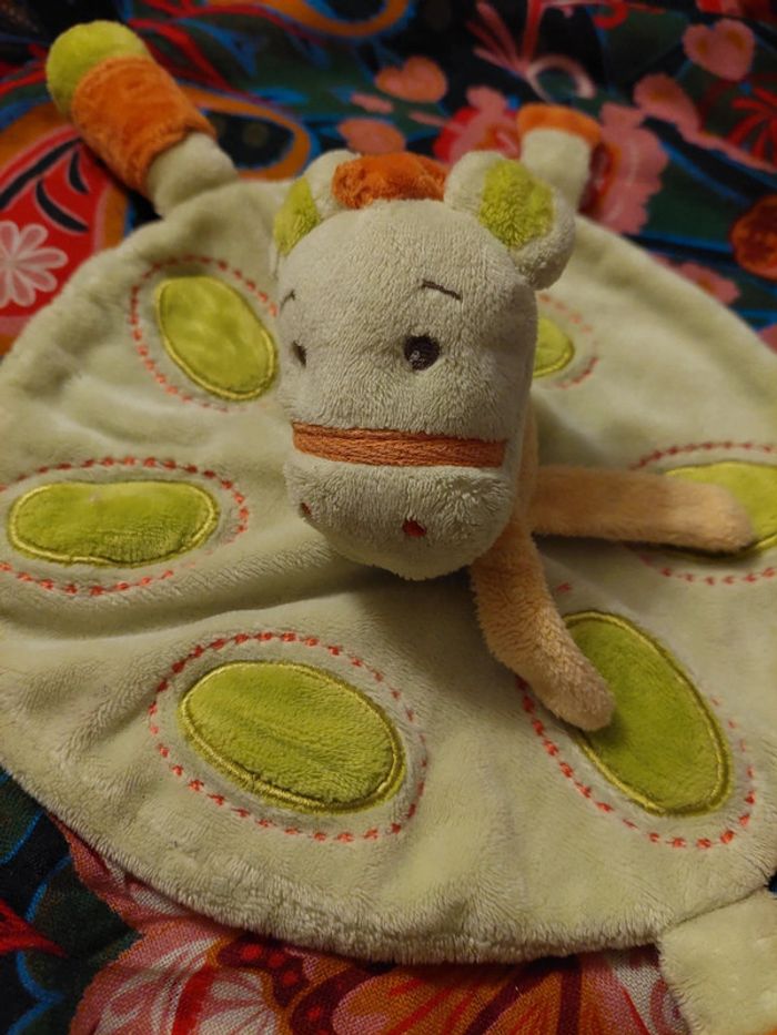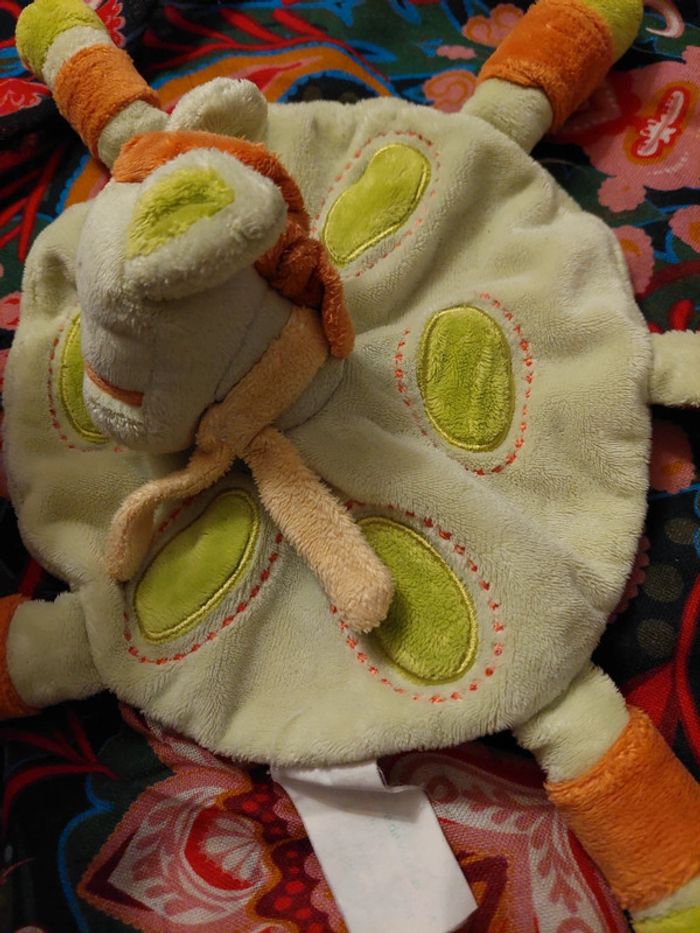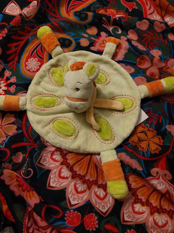 Cheval KIMBALOO (La Halle) doudou rond plat vert et orange La fonctionalité des lots étant disponible, n'hésitez pas à consulter le #lameredechine pour pouvoir facilement vous promener dans ma boutique.