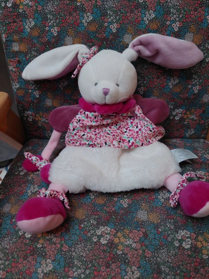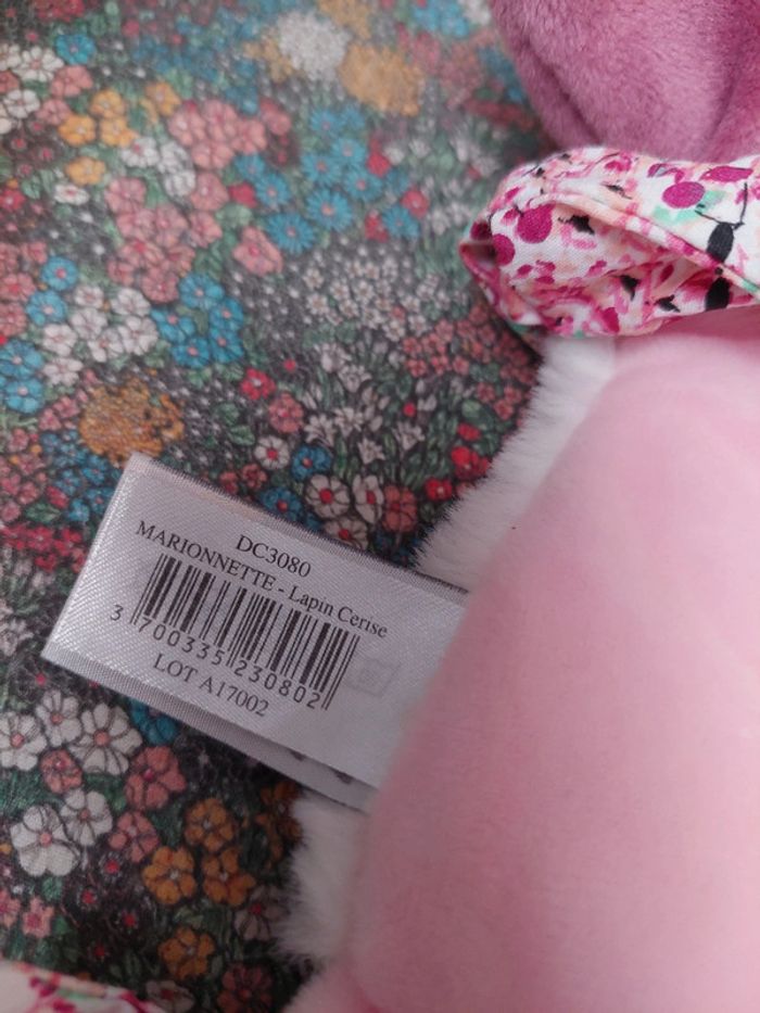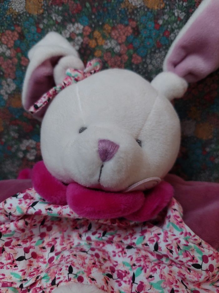 Doudou et compagnie - Marionnette Cerise le lapin blanc rose violet Référence DC3080 La fonctionalité des lots étant disponible, n'hésitez pas à consulter le #lameredechine pour pouvoir facilement vous promener dans ma boutique.