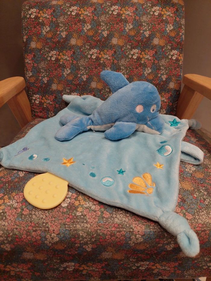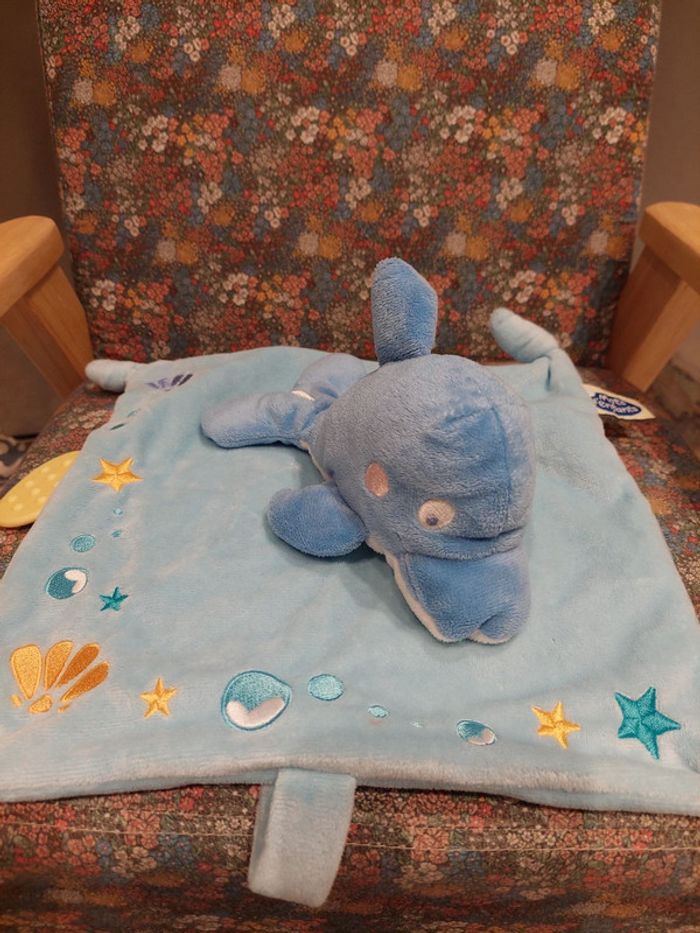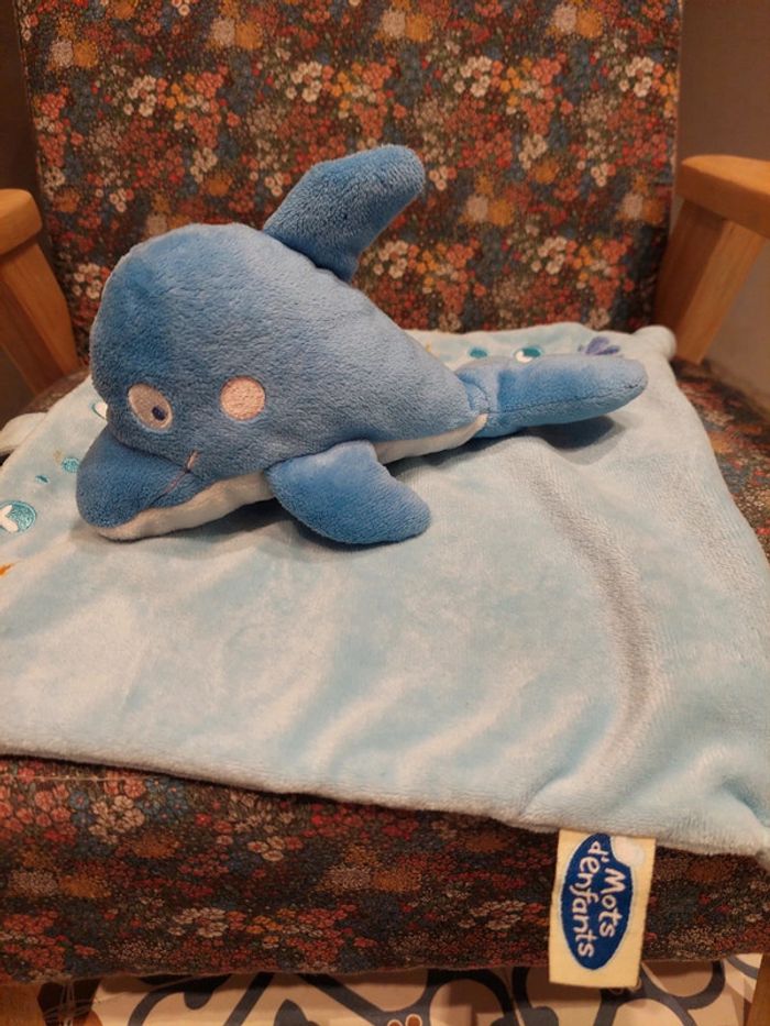#06 Mots d'enfants - doudou carré dauphin bleu - photo numéro 1