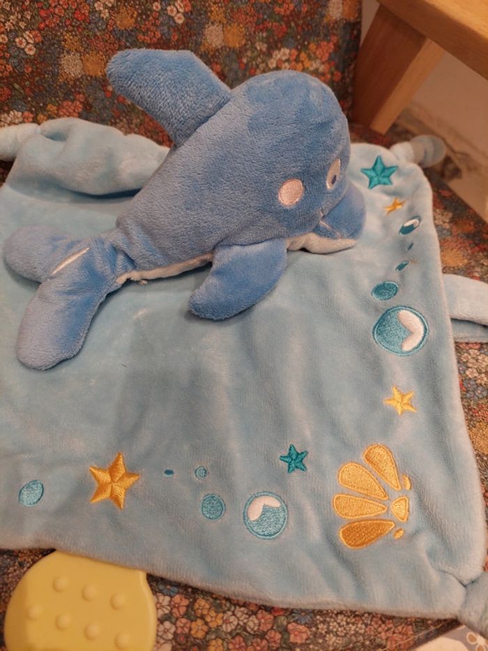 #06 Mots d'enfants - doudou carré dauphin bleu - photo numéro 6
