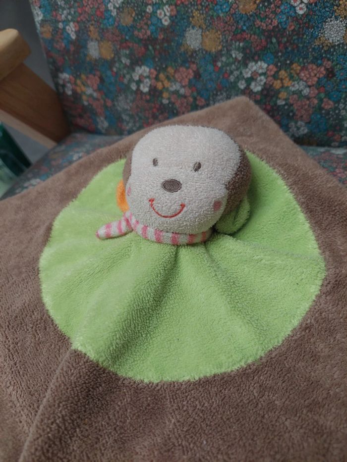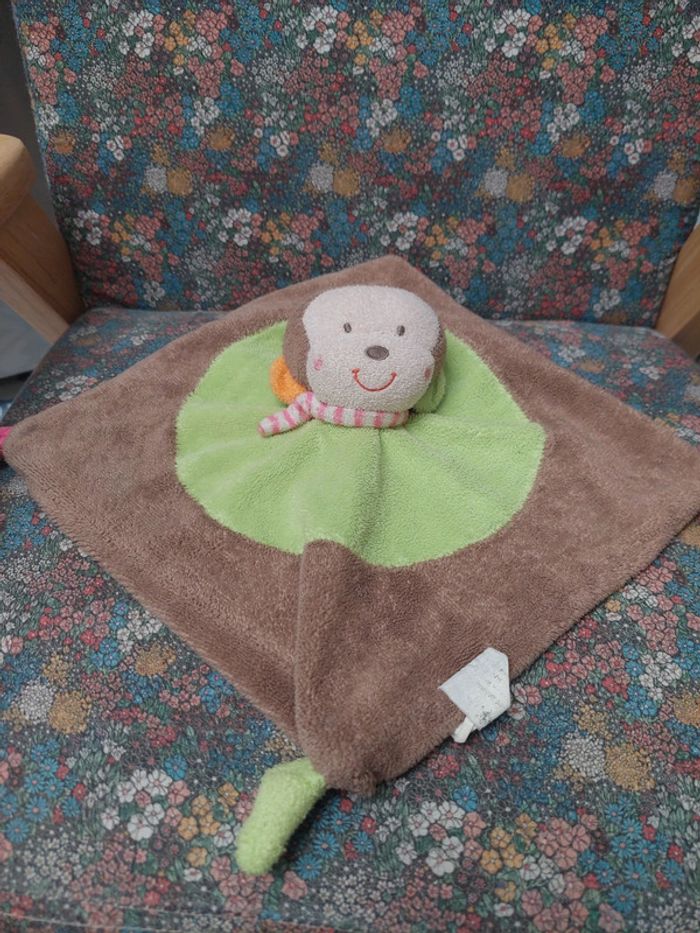 #10 Doudou mouchoir singe vert et marron - photo numéro 1