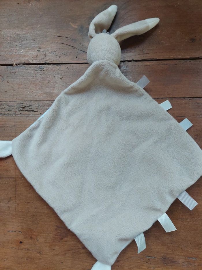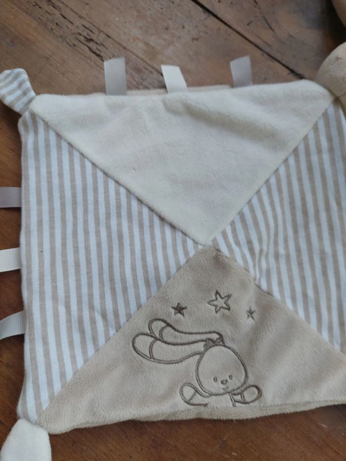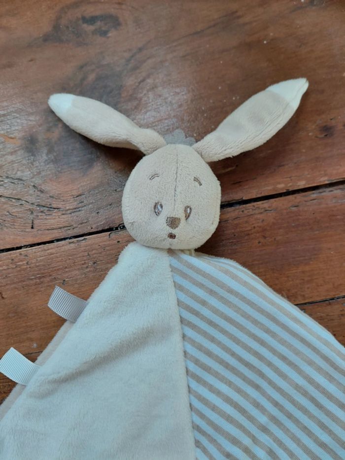 #5 Doudou plat lapin beige blanc rayé Auchan - photo numéro 1