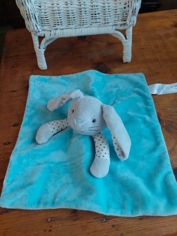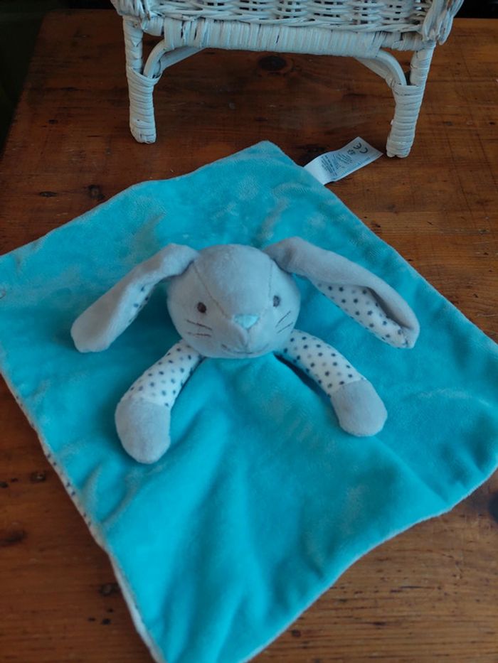 #05 - Doudou lapin gris et bleu Obaibi - photo numéro 1