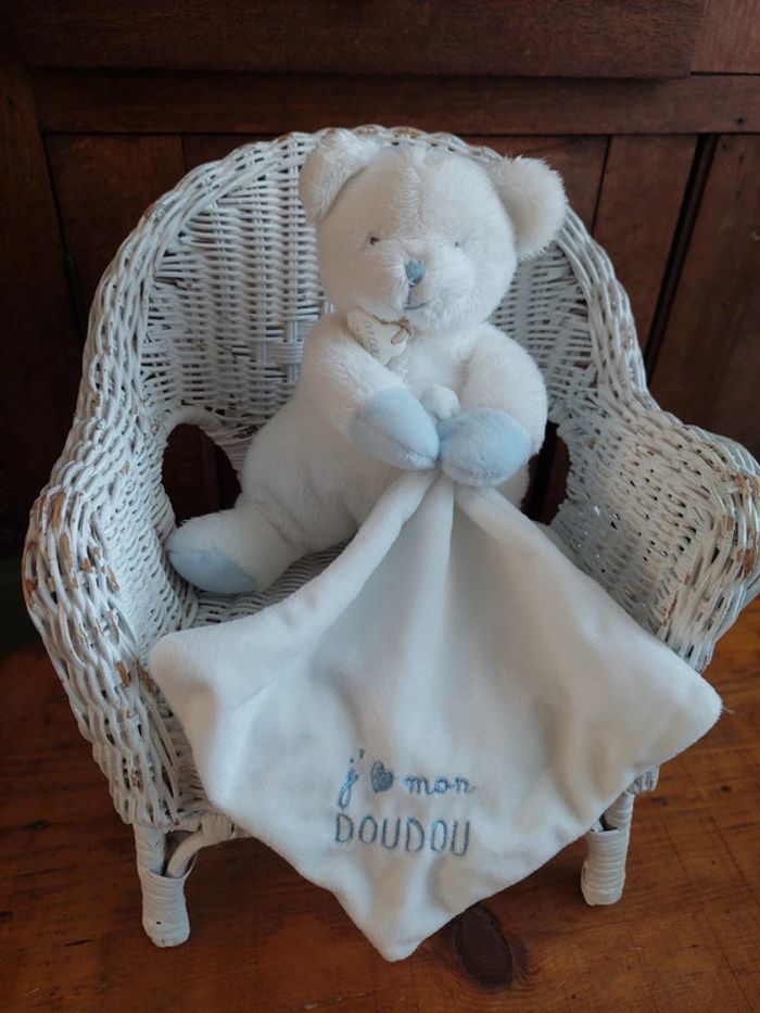 Doudou mouchoir Doudou et compagnie Pantin avec doudou ours bleu avec broderie j'aime mon doudou La fonctionalité des lots n'étant pas disponible pour les pros, n'hésitez pas à me contacter afin que je puisse vous créer une offre personalisée. En consultant le #lameredechine, vous pourrez facilement filtrer sur vos marques préférées.