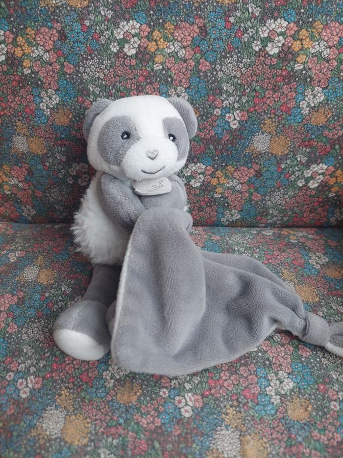 Doudou panda gris blanc mouchoir Baby Nat - photo numéro 1