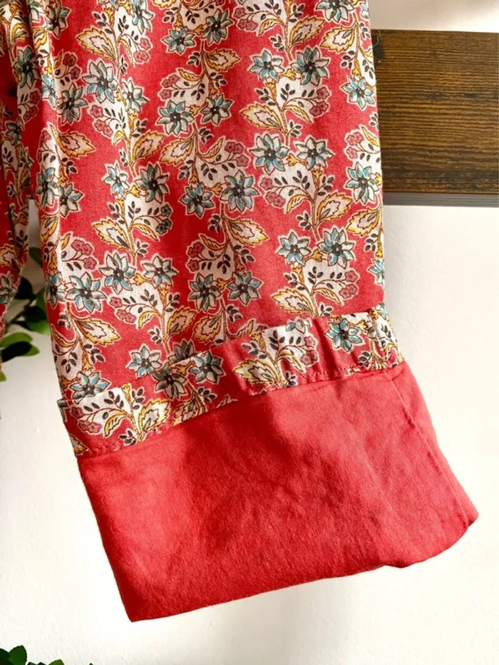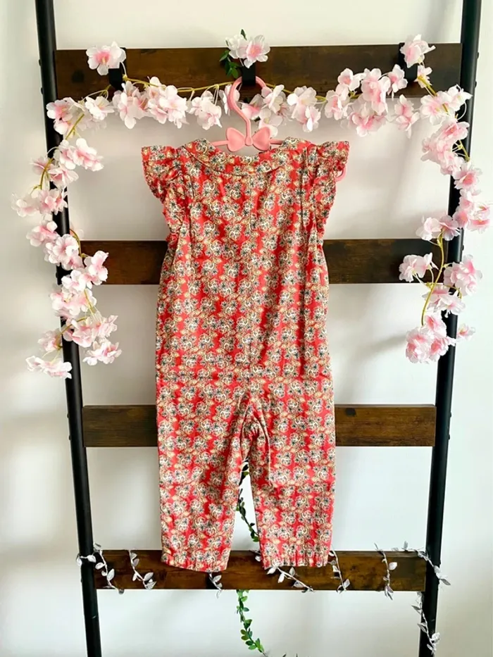 Combi pilote ample A fleurs Avec col Manches courtes et pantalon Liberty sur fond rouge Marque Sergent Major Taille 2 ans Jamais portée, juste lavée (mauvaise saison) NEUVE Idéal arrière-saison car légèrement doublée (cf dernière photo) Vendue 12€