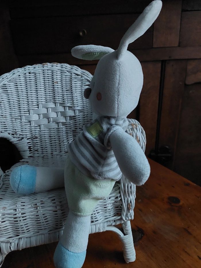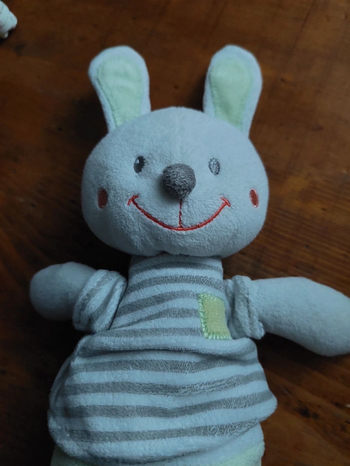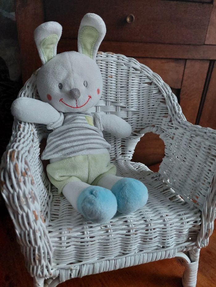 Doudou lapin blanc bleu vert rayé gris NICOTOY La fonctionalité des lots n'étant pas disponible pour les pros, n'hésitez pas à me contacter afin que je puisse vous créer une offre personalisée. En consultant le #lameredechine, vous pourrez facilement filtrer sur vos marques préférées.