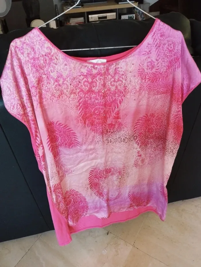 très bon état avec des strass des sequins taille 5 comme un 46/48 Polyester et coton contient de lelastane Jacqueline Riu 60 cm de largeur de poitrine Dispo en bleue !
