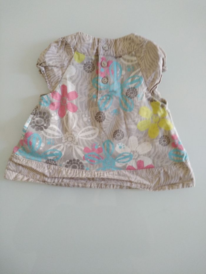 Robe courte,, col rond Boutons au dos pour fermer Taille 6 mois Plus l'étiquette pour identifier la marque Peut servir de haut avec short ou legging dessous