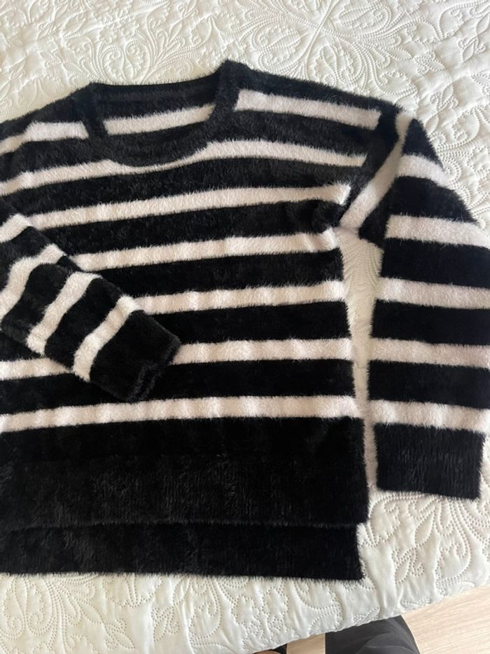Pull chaud à rayures noir et blanc - photo numéro 2