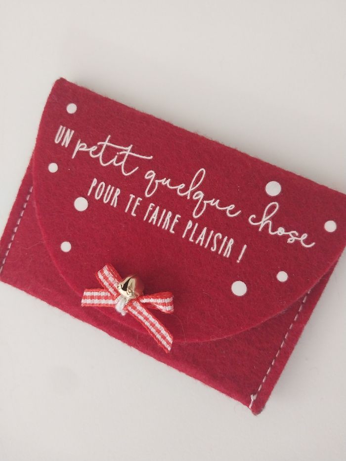 Charmante petite pochette en feutrine rouge, décorée de pois blancs, d’un petit nœud vichy rouge/blanc et d’un grelot doré. Inscription : « Un petit quelque chose pour te faire plaisir ! » Dimensions : environ 10 × 7 cm Fermeture pression dorée Idéale pour offrir un petit bijou, des bonbons, une carte cadeau ou toute autre petite attention État : très bon 💝 Parfaite pour emballer un cadeau de fête, Noël ou une petite surprise ! #noel #noel2025 #cadeaudenoel