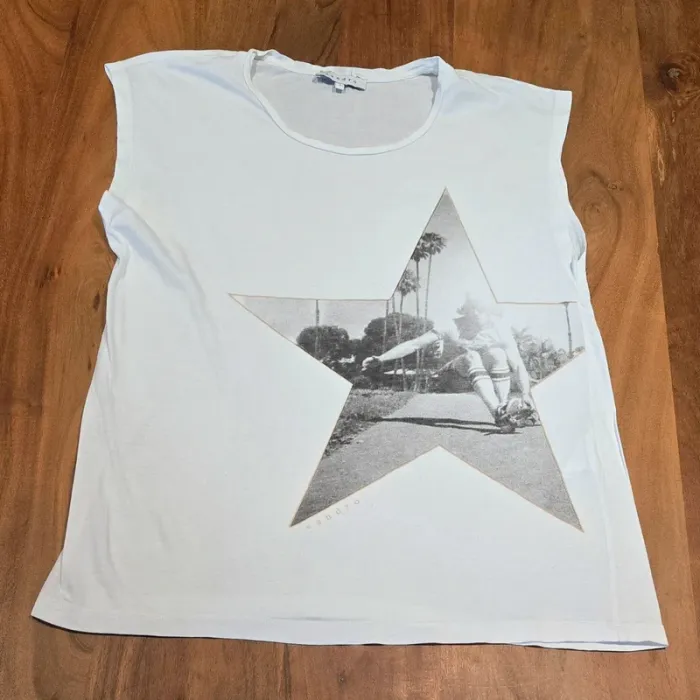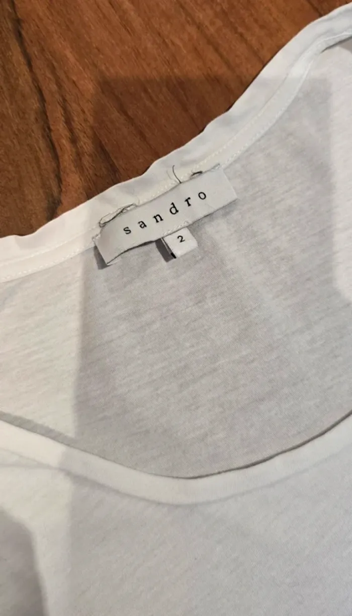 Tee-shirt de la marque Sandro, taille M (correspond à une taille 2). En excellent état, très peu porté, aucun défaut. Coupe moderne et tissu de qualité, parfait pour un look chic et décontracté. 📦 Envoi rapide et soigné. N’hésite pas à me contacter pour plus d’infos ou pour un lot !