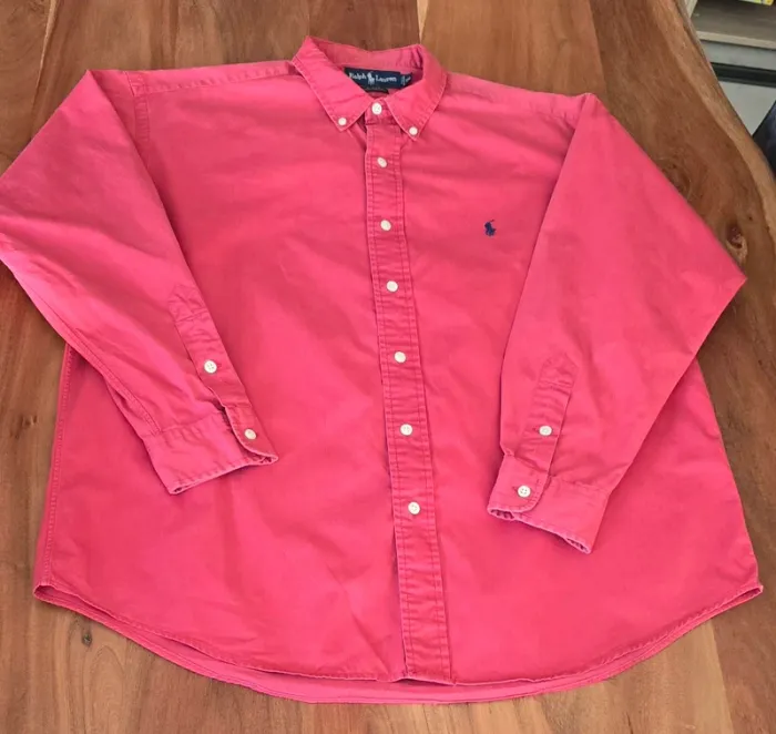 Chemise Ralph Lauren rouge – Modèle Blake – Taille L Chemise Ralph Lauren modèle Blake, couleur rouge, taille L. Bon état général : un petit accro discret et la couleur est légèrement passée à cause des lavages, mais elle reste très belle portée. Coupe classique, 100% coton, logo brodé sur la poitrine. 📦 Envoi rapide ✅ Article authentique N’hésite pas si tu as des questions !