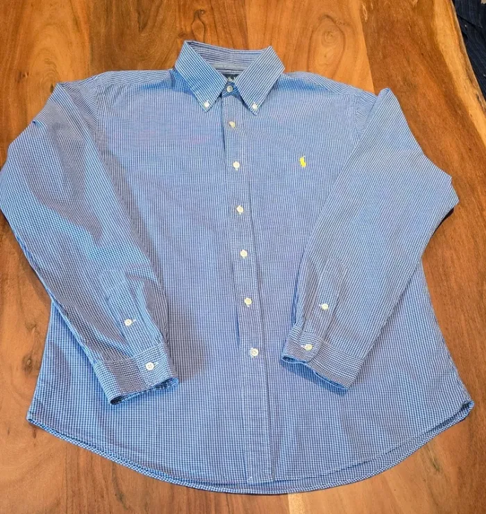 Chemise à carreaux vichy bleu et blanc de la marque Ralph Lauren, coupe Custom Fit, 100% coton. Taille L En excellent état, très peu portée. Style classique et intemporel, parfaite pour un look casual chic. ✅ Authentique ✅ Aucun défaut ✅ Lavée et repassée, prête à porter 📦 Envoi rapide et soigné
