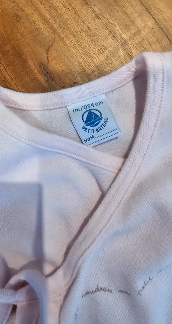 Body Petit Bateau - Taille 1 mois Couleur rose, forme cache-cœur avec petit nœud sur le côté. Très doux et confortable pour nouveau-né. Excellent état, très peu porté, aucun défaut. Marque connue pour sa qualité et ses finitions. 🍼 Idéal pour une naissance ou en cadeau 📦 Envoi rapide – me contacter pour toute question !