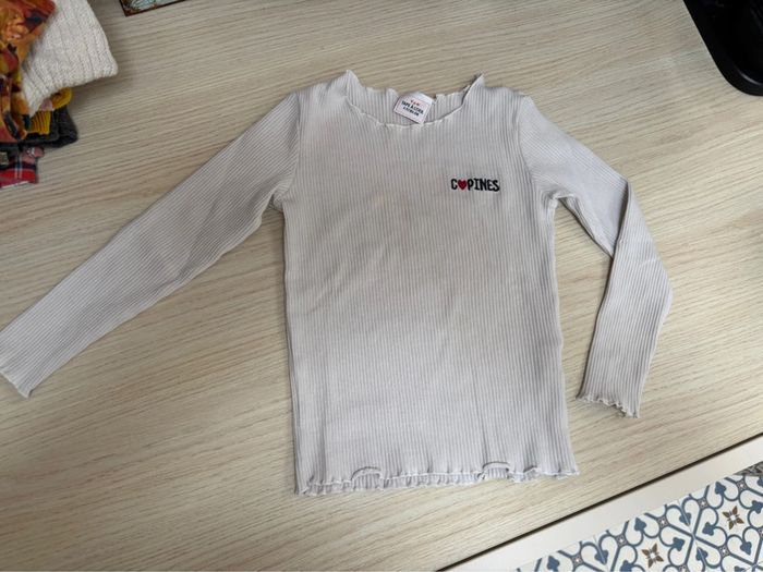 T-shirt manches longues Tape à l’œil Taille 4 ans Blanc côtelé, brodé cœur copines