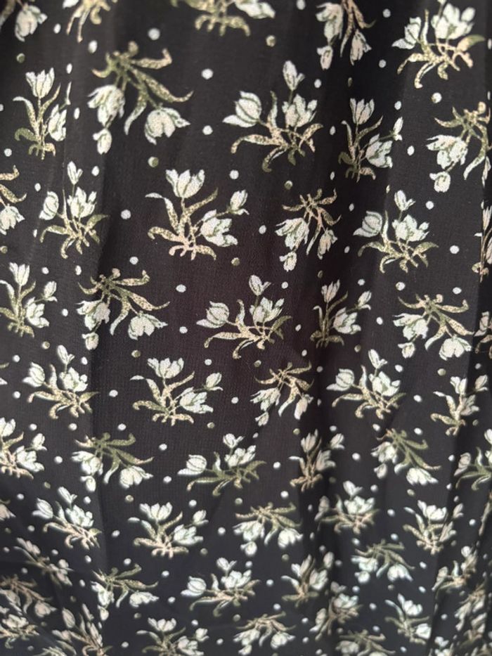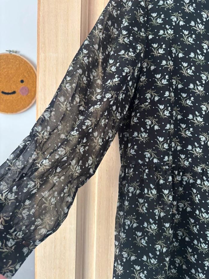 Robe noire à fleurs Uniqlo Col Claudine, manches transparentes