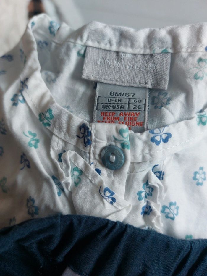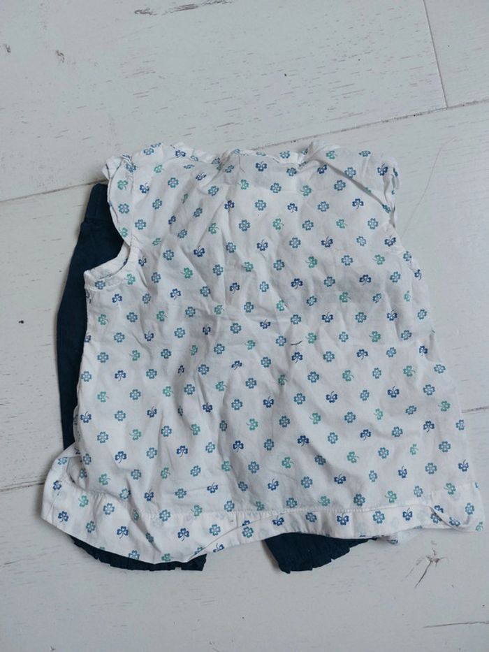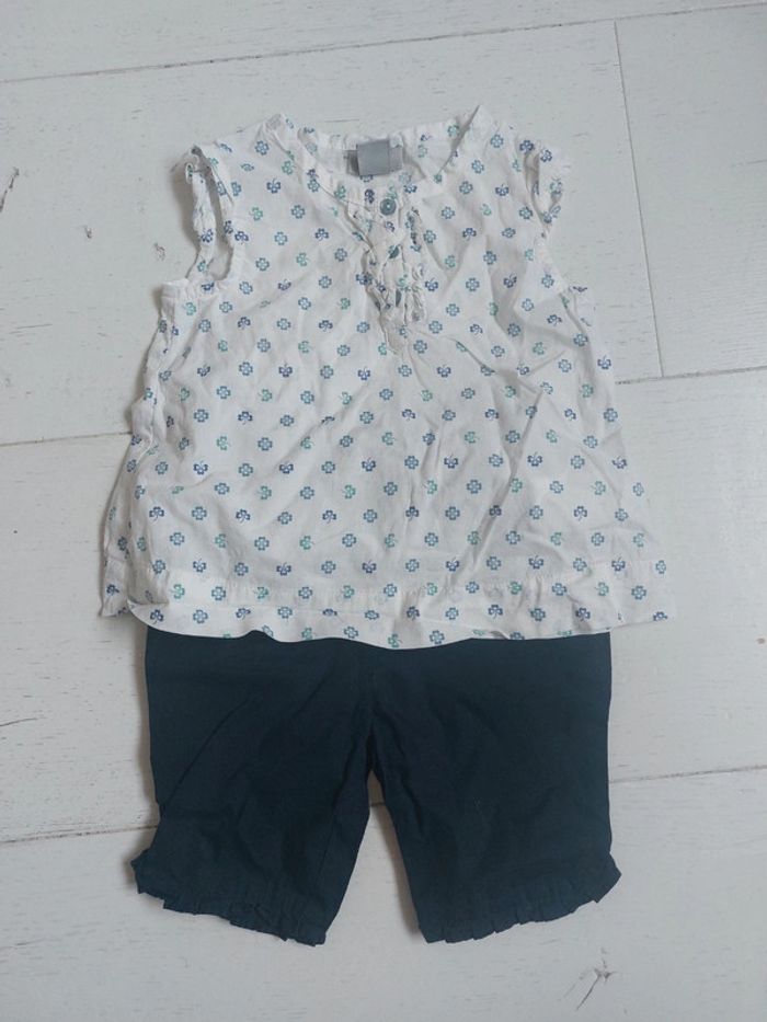 #victoireagrandi Ensemble Cyrillus : short bleue marine et blouse imprimée trèfles Taille 6 mois