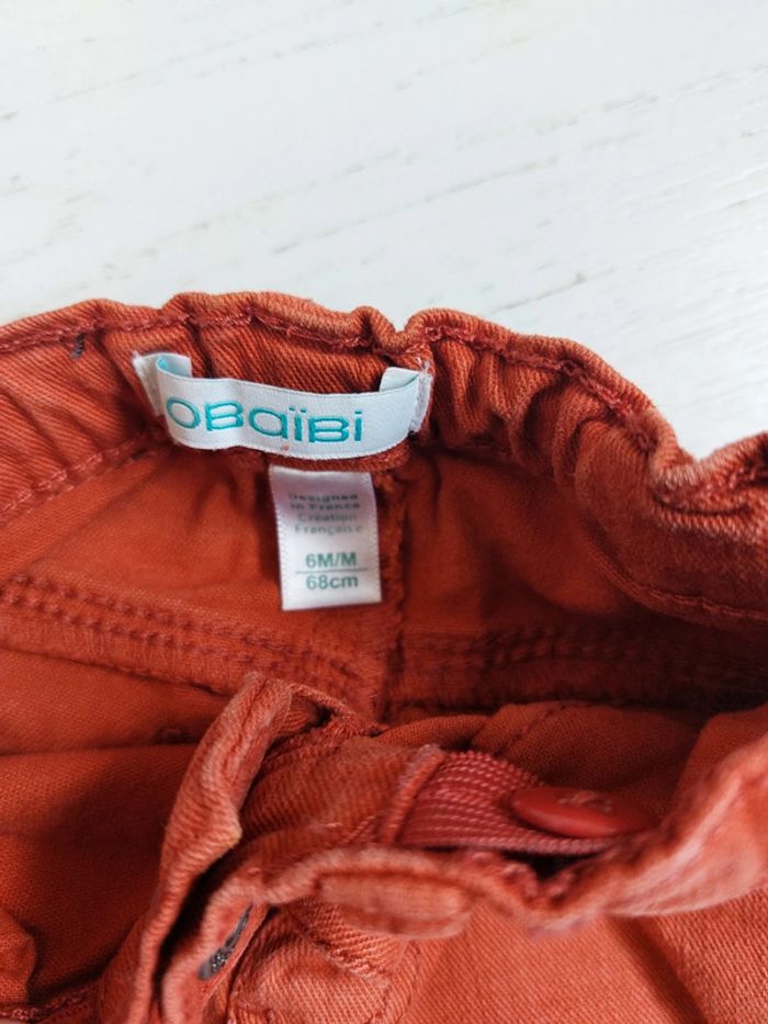 #victoireagrandi Jean rouge orangé Obaibi Taille 6 mois ajustable 97% coton 3% elasthane