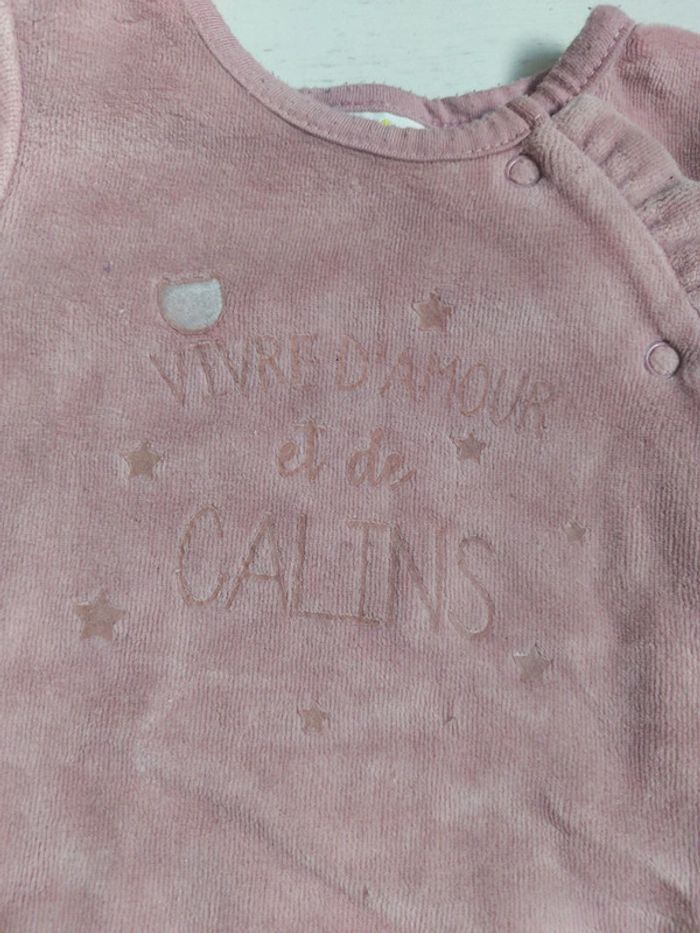 #victoireagrandi Pyjama en velours vieux rose Vivre d'amour et de câlins Tape à l'œil Taille 6 mois