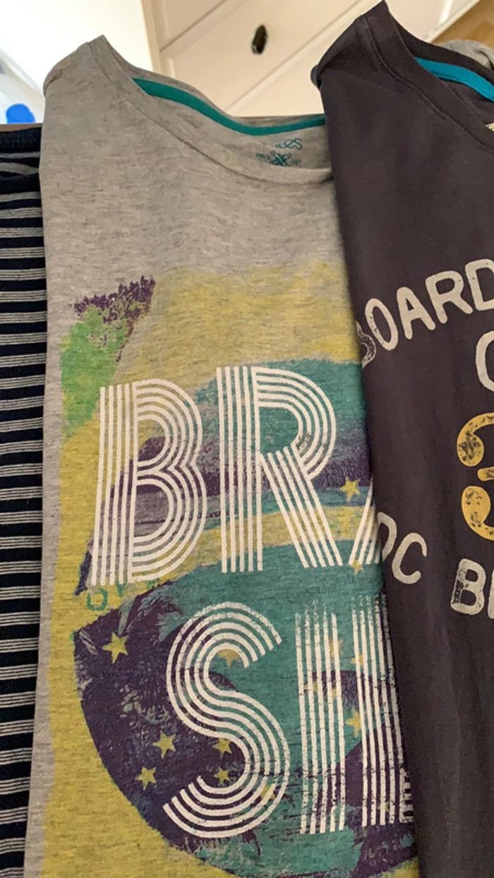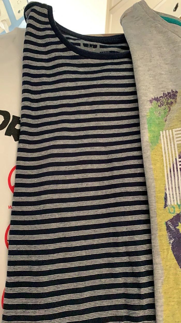 Lot composé d’un t-shirt Singapore, 1 t-shirt rayé Primark L, un t-shirt modèle Brasil Jules L et un t-shirt bleu EDC #nis2008tshirtHL