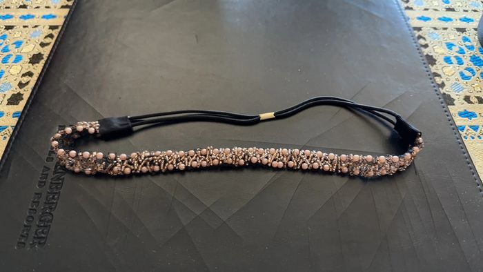 Bandeau/serre-tête avec perles beige rosées - photo numéro 2
