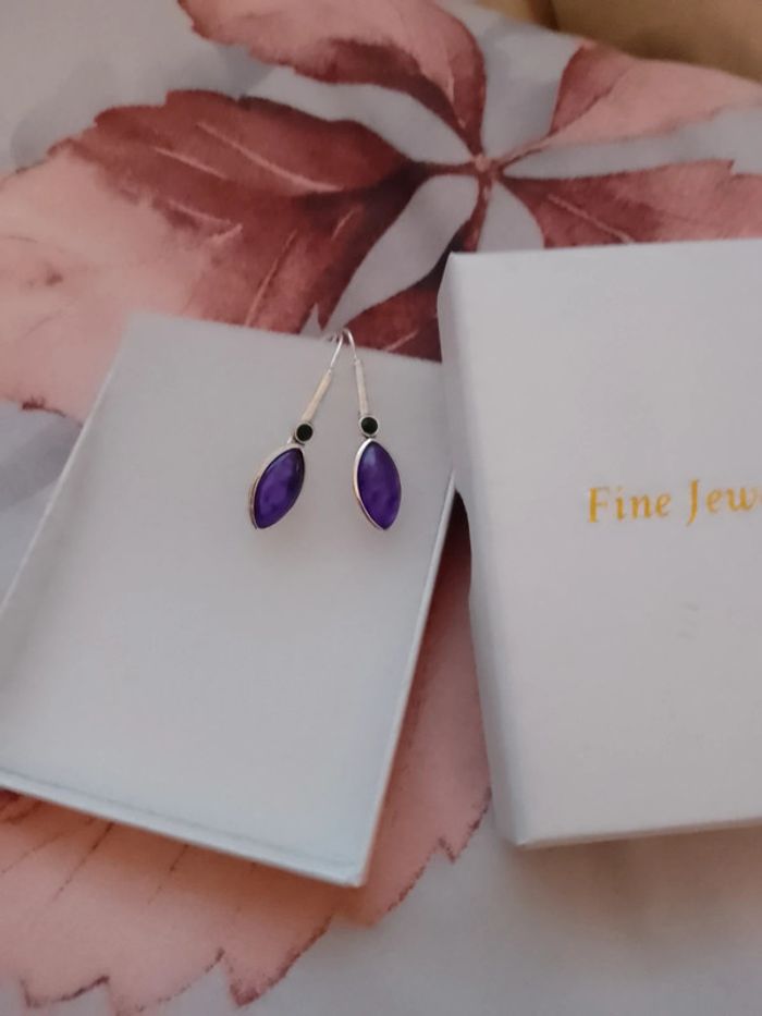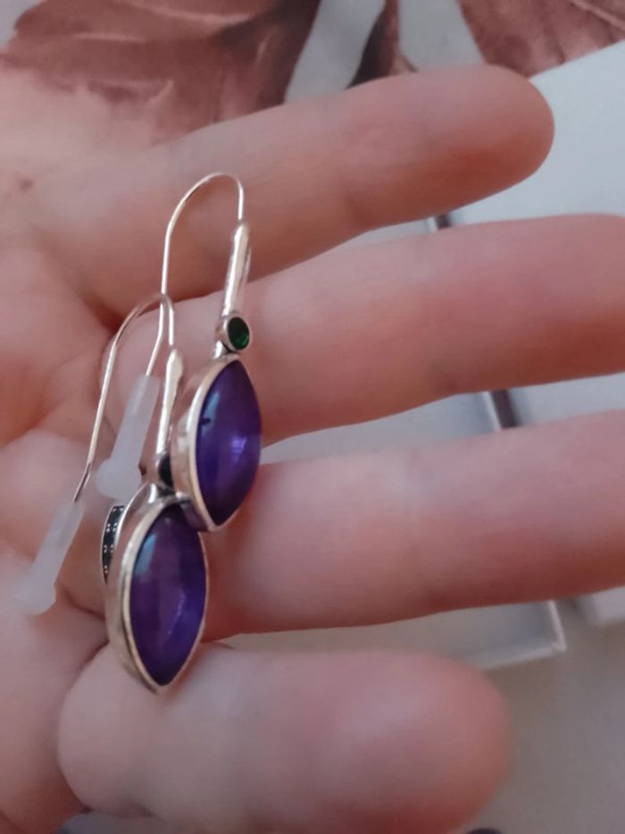 Boucles d'oreilles bohèmes vintages argentées et violettes