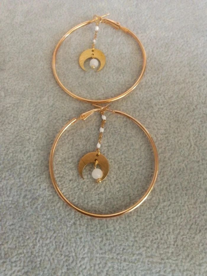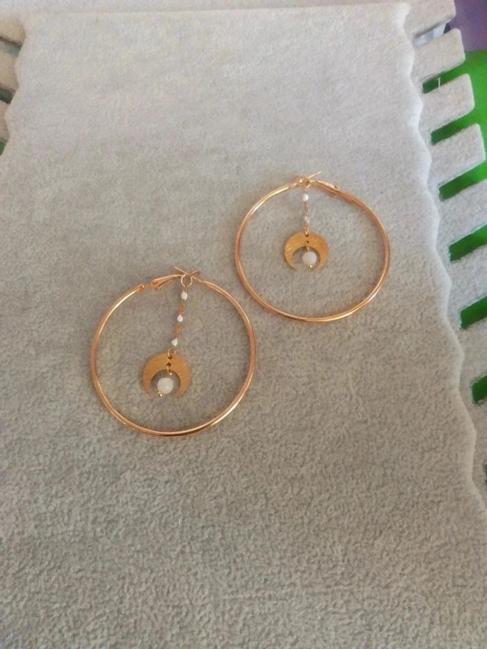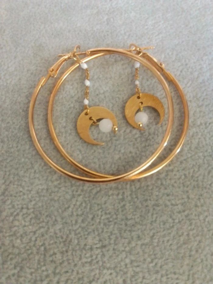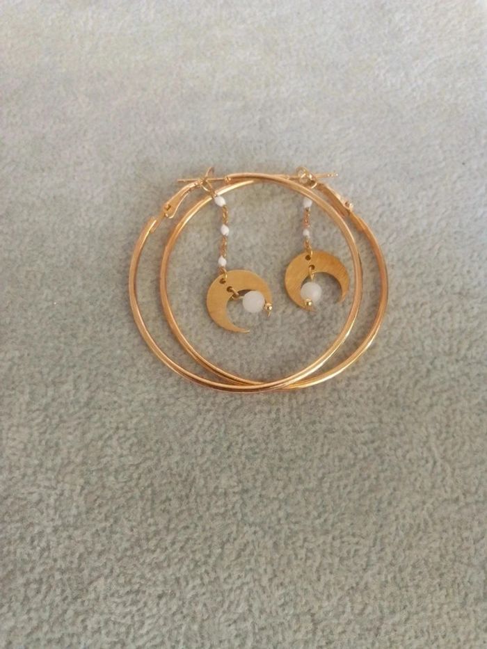 Jamais utilisées Lune et pierre de lune naturelle Pierre de lithothérapie Pas de photo portée pour les boucles d'oreilles/ hygiène 👌🪷