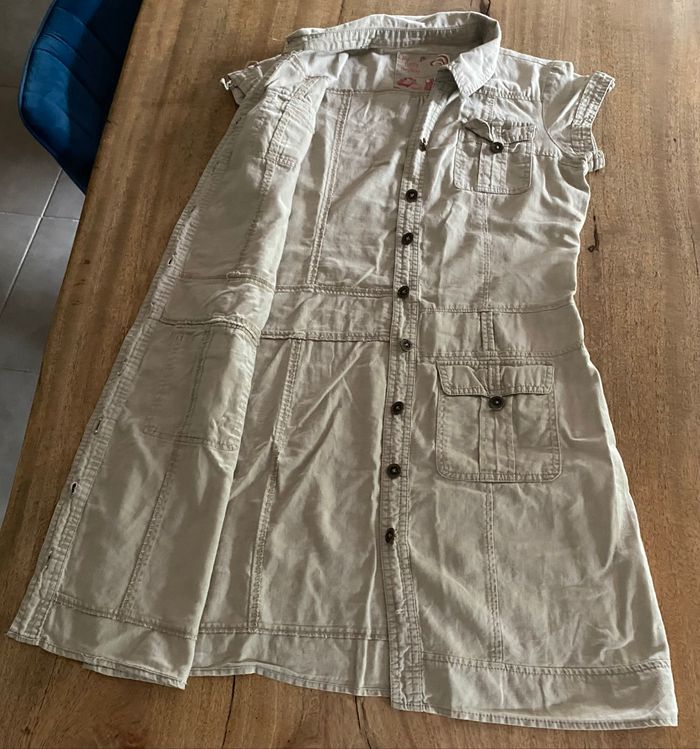 Robes courte Taille M(38) Manque un bouton sur l’épaule Sans tache 8 boutons voire photo manque un bouton 55% lin, 45% coton.