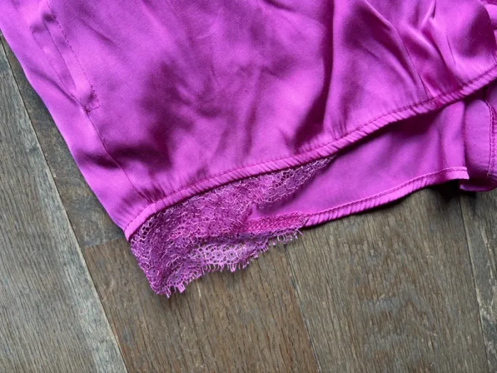 Débardeur aux bretelles réglables t.S, dos ouvert+ short aspect satiné avec dentelle En tbe peu porté