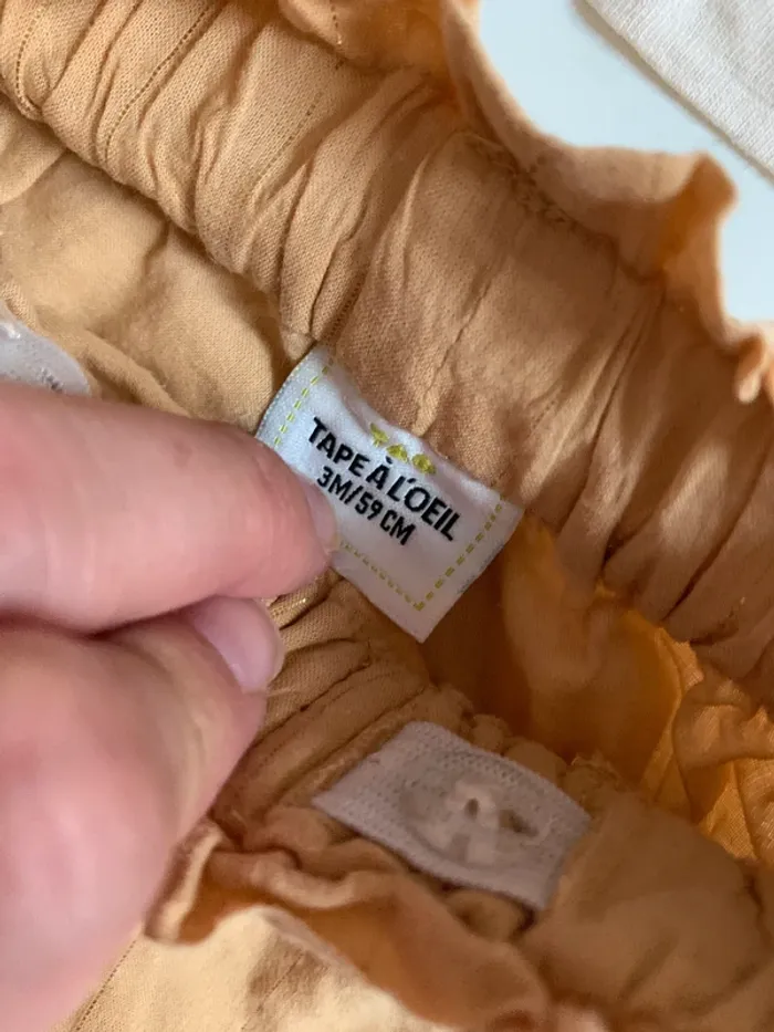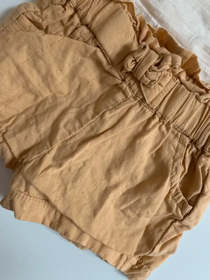 T-shirt écru brodé + short moutarde camel avec fil doré Le tout est en parfait état peu porté -- Remise sur les lots -- #meg05bébéfille3mois