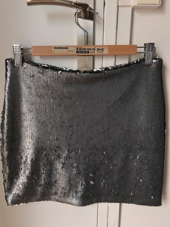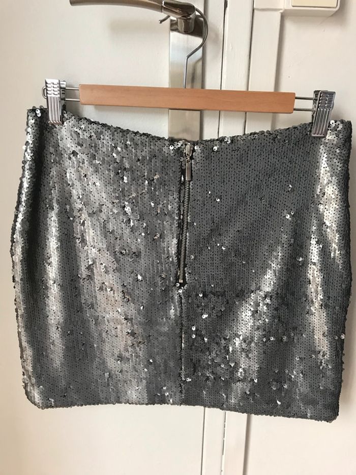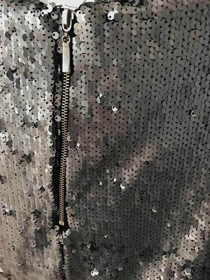 Paillettes réversibles grises ou noires Doublée tissu noir, fermeture éclaire argenté au dos Coupe droite ; Longueur : 38cm TBE portée une fois 🌸 réductions sur les lots 🌸